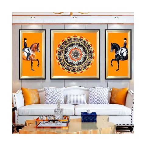 لوحة فنية حديثة فاخرة أمريكية 3 لوحات مطبوعة بشكل حصان ببرواز أوروبي لوحة فنية جدارية مطبوعة على القماش الملفوف لغرفة المعيشة وغرفة النوم