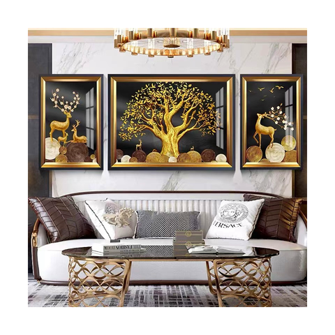 لوحة فنية فخمة حديثة أمريكية مطبوعة برسومات على هيئة غزال وشجرة وحيوانات بإطار أوروبي مناسبة لغرفة المعيشة وغرفة النوم